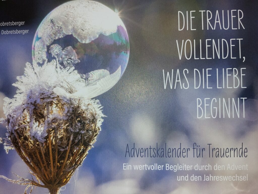 Dieser besondere Adventskalender schenkt kleine Impulse, Gedanken und Trostmomente und lädt vom 1. Dezember bis 6. Jänner dazu ein, jeden Tag bewusst innezuhalten, sich selbst liebevoll zu begegnen und der eigenen Trauer Raum zu geben.